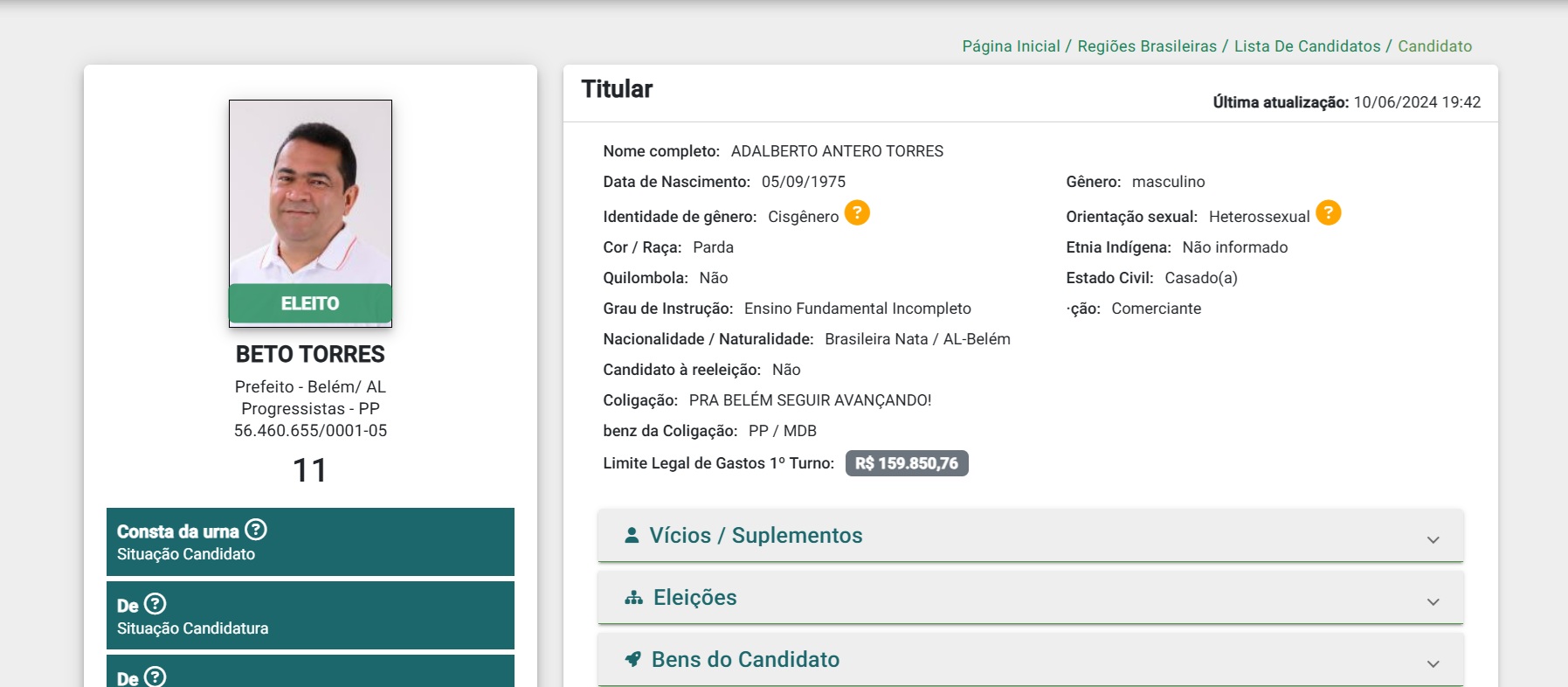 Porém, dizem que Beto Torres é conhecido na cidade como um cidadão bem-sucedido e que acumulou fortuna antes mesmo de entrar na política e ser prefeito do município. Tanto que a declaração de R$ 15.253.886,51 consta desde o pleito de 2024.