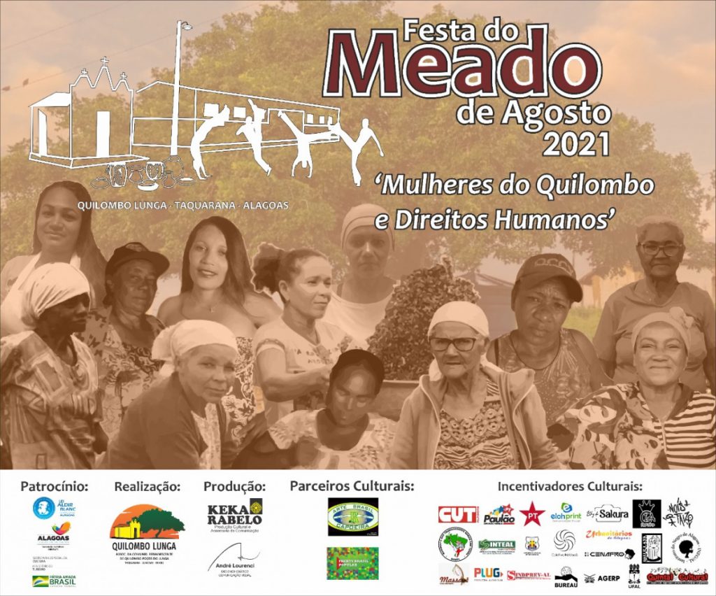 A Festa do Meado de Agosto acontece há mais de 200 anos presencialmente em homenagem às tradições quilombolas em Alagoas e à Mestra Firmina Mercê de Jesus, primeira Educadora Popular do território Lunga, a Festa do Meado de Agosto 2021 tem como tema “Mulheres do Quilombo e Direitos Humanos” uma homenagem as mulheres Quilombolas e debate sobre a retirada de Direitos quem vem passando as comunidades Tradicionais. Por causa da pandemia, a festa será realizada de forma híbrida.