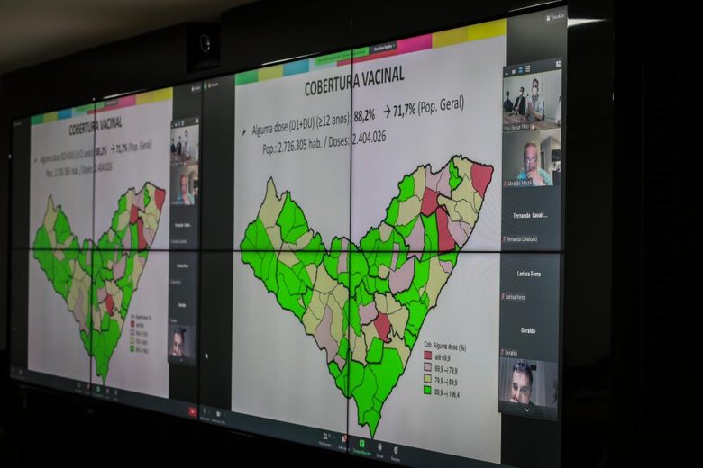 O hanking apresenta os 102 municípios do Estado, separadamente, e disponibiliza a cobertura vacinal em cada um deles. Vale esclarecer que o percentual de pessoas vacinadas depende da quantidade de pessoas residentes no município. Esse número pode ser calculado de acordo com a quantidade total de pessoas ou pode ser calculado considerando-se a população vacinável, ou seja, as pessoas com 12 anos ou mais.