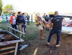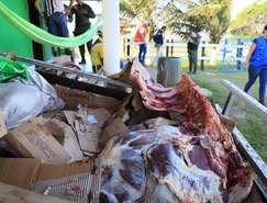 Na oportunidade, além da apreensão da carne para descarte, também foram apreendidas as ferramentas usadas no abate dos animais e posterior corte das peças.