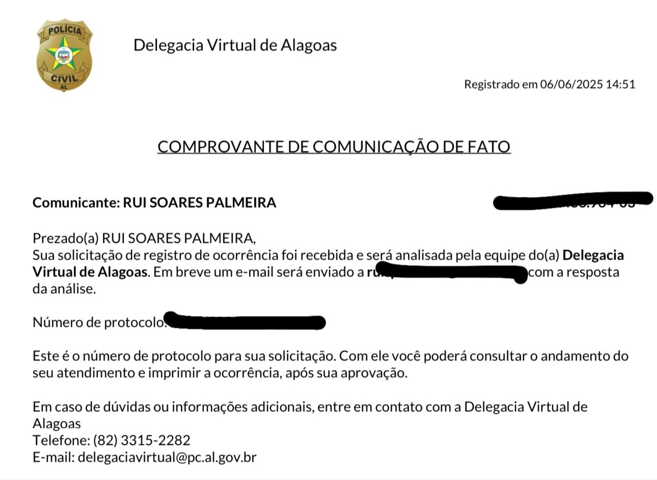 Por fim, Rui Palmeira orienta que, caso alguém receba mensagens, ligações ou abordagens com esse tipo de proposta, não realize nenhum pagamento e denuncie imediatamente à polícia pelo Disque Denúncia, no número 181.