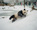Brincadeira não tem idade: panda adulta se diverte na neve no Zoológico de Moscou