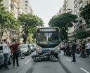 Confusão no trânsito termina com ônibus passando por cima de moto no Leblon