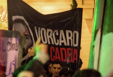 Manifestantes protestam em frente à sede do Banco Master na capital paulista