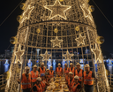 Trabalhadores celebram Natal dentro das árvores flutuantes do Rio
