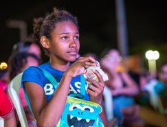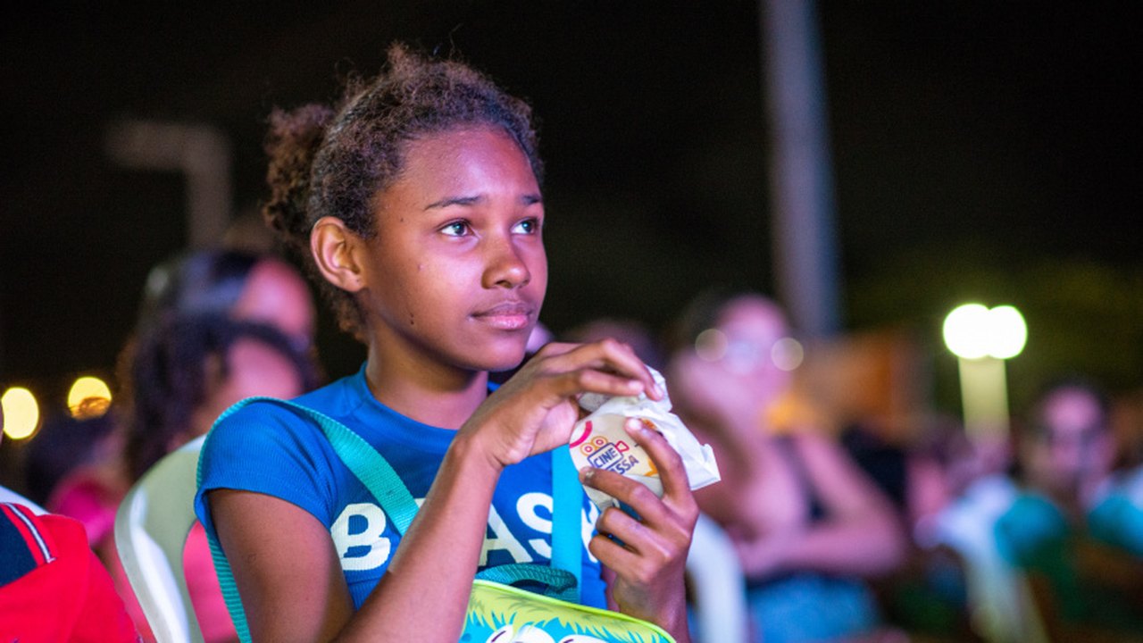 A orla lagunar do Vergel do Lago abriu o evento, na terça-feira (18). Entre a criançada estava Helena Clarice, de cinco anos. Ela nunca tinha ido ao cinema e se encantou com a exibição. “Foi muito legal, é a primeira vez que assisto esse [filme] e a tia ainda me deu pipoca e confeitos”, disse a pequena.