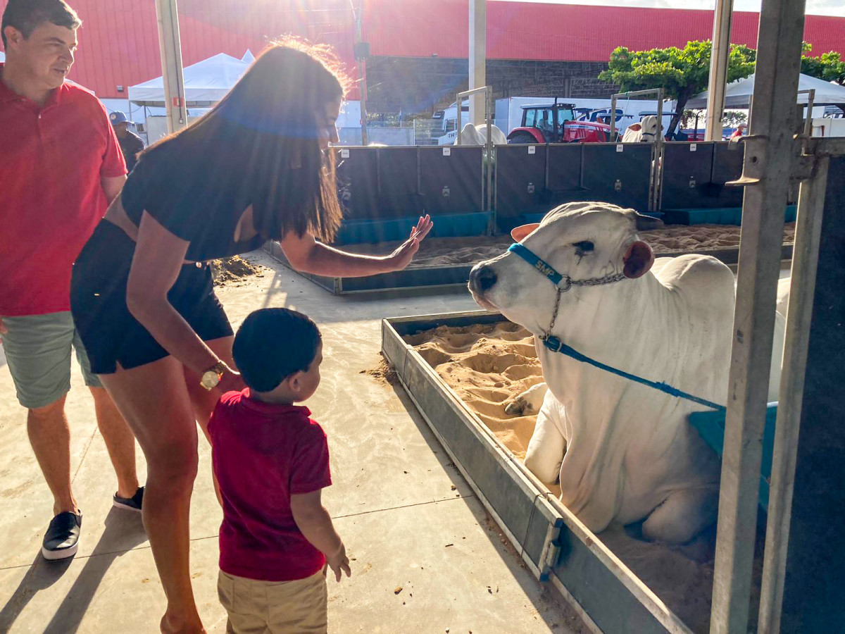 Com o parque em novo formato, com baias mais amplas e setorizadas, o público se aproxima do campo na área de exposição dos animais, que contam com ovinos santa inês, bovinos gir leiteiro, girolando, nelore e sindi, além dos cavalos mangalarga marchador.
