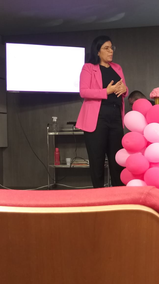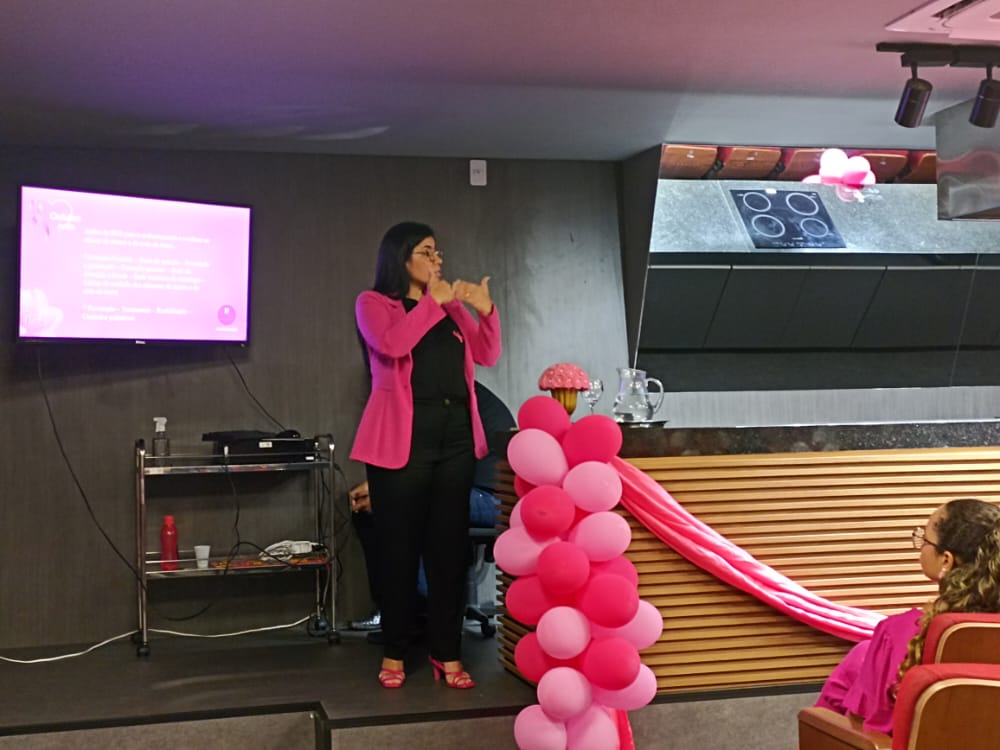 As ações do SUS para o enfrentamento ao câncer de mama e do colo do útero foi o tema da palestra ministrada pela vice-presidente do Conselho de Secretarias Municipais de Saúde de Alagoas (Cosems-AL), Paula Gomes, secretária de Saúde de Santana do Mundaú.
