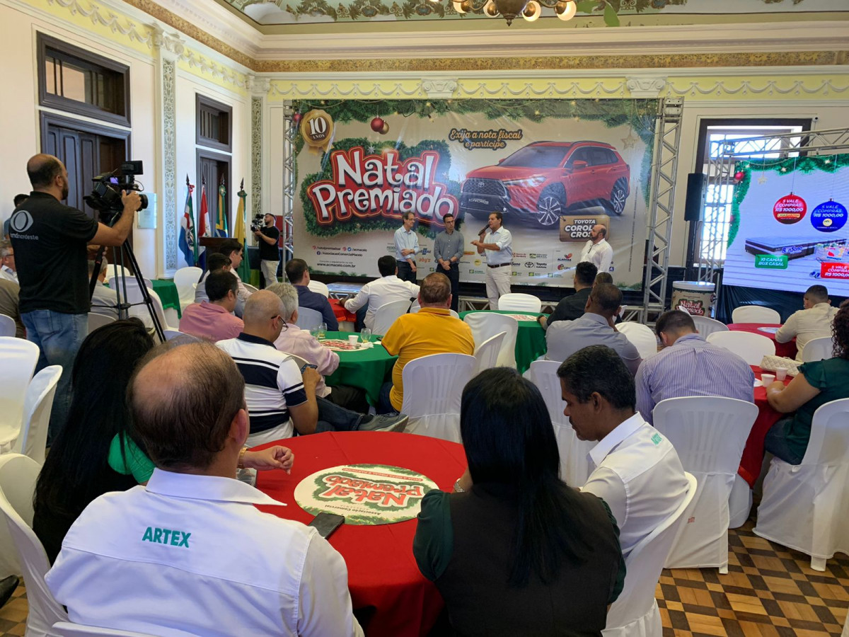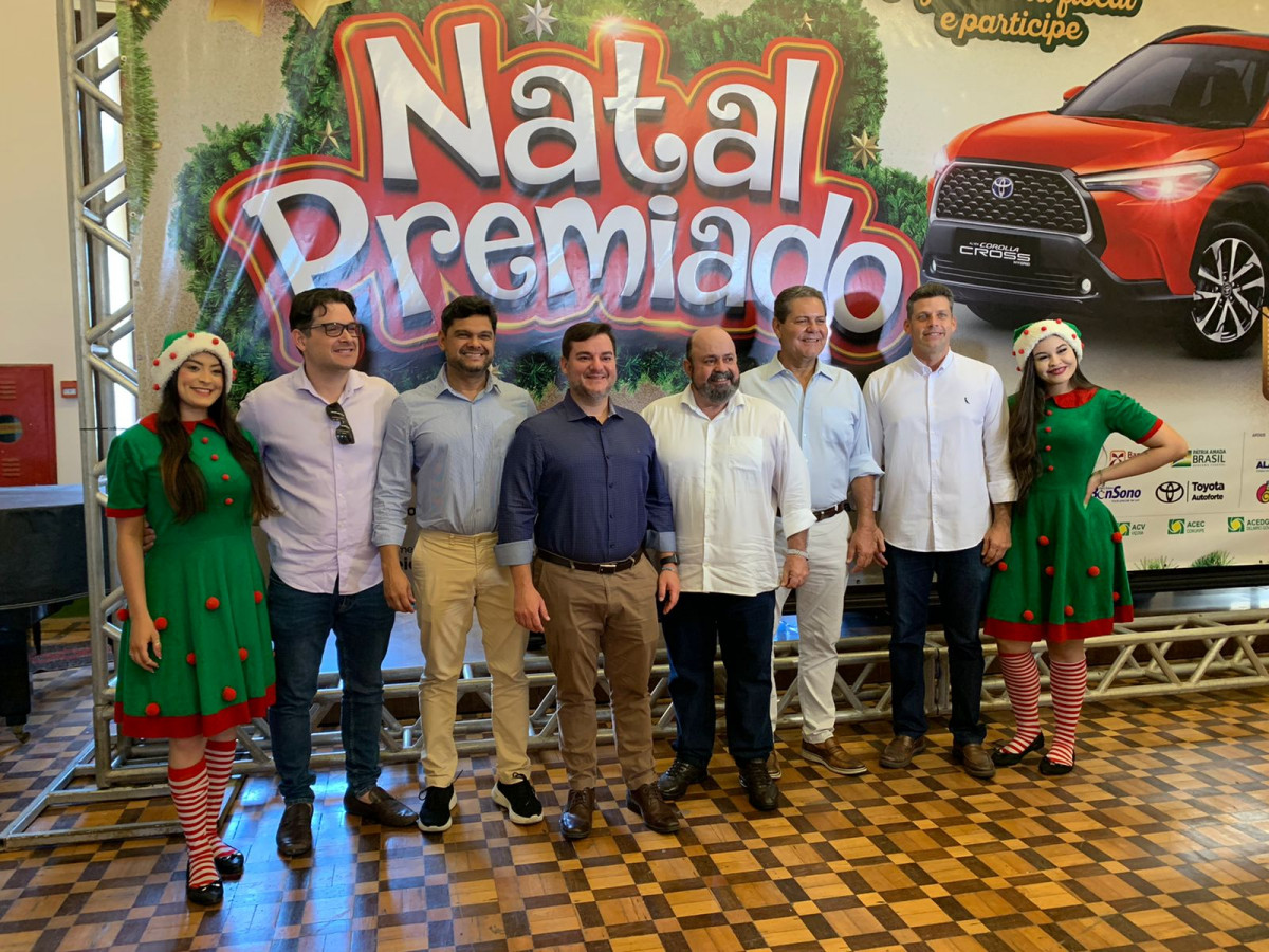 A 10ª edição da promoção Natal Premiado foi lançada nesta terça-feira (8), durante um café da manhã, na Associação Comercial de Maceió, em Jaraguá. Empresários, autoridades públicas, funcionários e imprensa acompanharam o anúncio das novidades e da meta da maior campanha promocional do varejo em Alagoas. Serão sorteados cerca de R$ 300 mil em prêmios para consumidores no dia 11 de janeiro, entre os 48 prêmios estão 1 automóvel Corolla Cross zero km, mais 2 caminhões de prêmios, 10 camas box de casal e outros 35 prêmios. A cada R$ 80 em compras o cliente tem direito a um cupom.