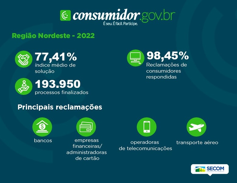 A plataforma online de solução de conflitos de consumo do Governo Federal, o Consumidor.gov.br, revela que, em média, 78,42% das reclamações registradas em Alagoas (AL) foram solucionadas. É a quarta maior média da Região Nordeste. Bancos, financeiras e administradoras de cartão lideram o ranking de segmento de mercado com 2.210 reclamações finalizadas e 79,05% de resolutividade. Os dados são Ministério da Justiça e Segurança Pública, responsável pela ferramenta.
