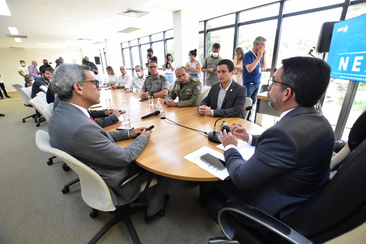 A coletiva também contou com a participação da secretária do Gabinete Civil, Luiza Barreiros; da secretária de Planejamento e Gestão, Renata Santos; do delegado-geral da Polícia Civil, Gustavo Xavier; e do comandante-geral da Polícia Militar, coronel Paulo Amorim.