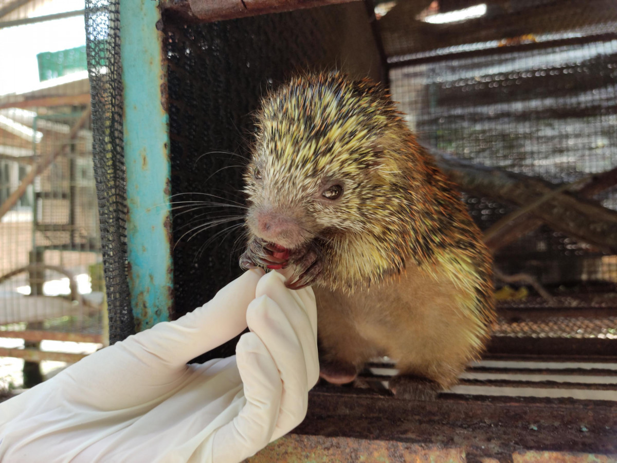 Ellen, como foi carinhosamente apelidada por André Gil, biólogo do IMA alocado no Cetas, é um ouriço, popularmente conhecido como “coandu-mirim”, que chegou com o cordão umbilical e cabia na palma de uma mão. Após cuidados intensivos durante 70 dias, o animal já possui maior independência em questões alimentares e fisiológicas.