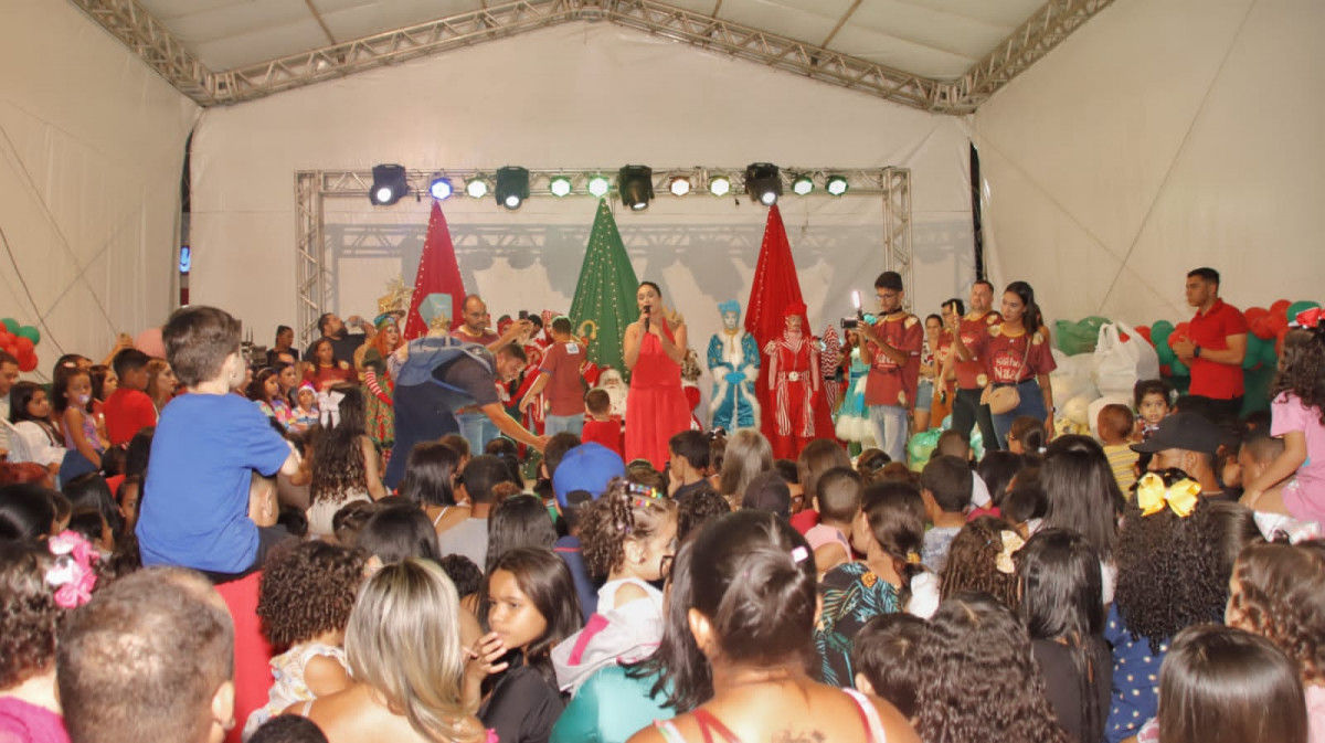 Além das apresentações natalinas, foram distribuídos mais de 2 mil brinquedos, uma linda iniciativa da gestão municipal capitaneada pela prefeita Ângela Vanessa, que emocionada com a magia do Natal, distribuiu presentes, fazendo a alegria da criançada.