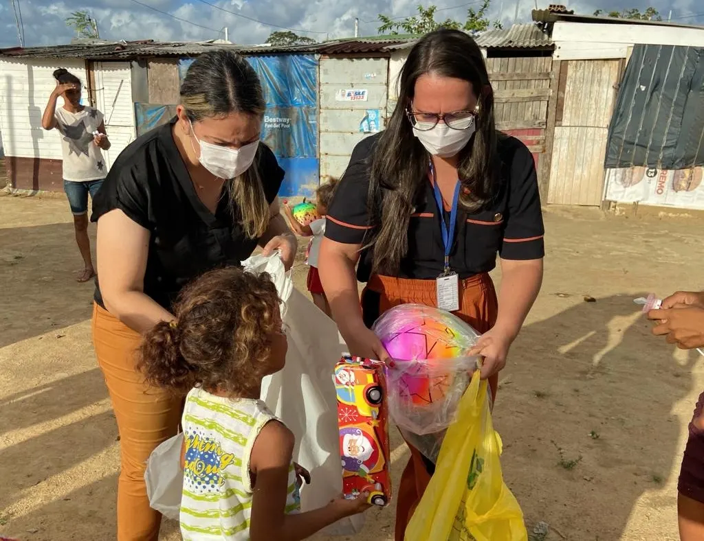 Alegria e brilho nos olhos marcaram o dia de hoje de todas as crianças das comunidades Dandara 1 e 2 do bairro do Benedito Bentes, em Maceió. O Conselho de Secretarias Municipais de Saúde de Alagoas (AL) teve a iniciativa pioneira este ano e resolveu no Natal fazer a diferença nos lares de famílias carentes e doou mais de 400 presentes ao Programa Consultório na Rua.