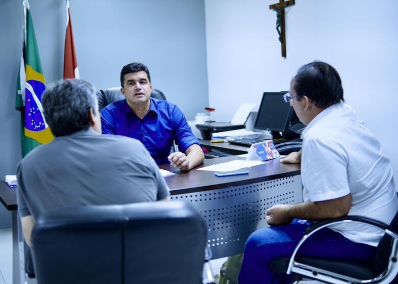Secretário Rui Palmeira recebeu o prefeito do município em reunião na Seinfra. Foto: Ascom Seinfra