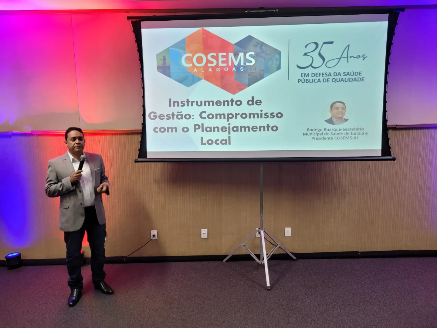 A aplicabilidade dos instrumentos de Gestão enquanto compromisso com o planejamento dos municípios alagoanos foi a temática de Saúde que movimentou as discussões hoje pela manhã no Congresso da Associação dos Municípios Alagoanos (AMA). De forma descontraída e objetiva o presidente do Cosems-AL Rodrigo Buarque falou sobre o assunto de forma técnica e prática. Rodrigo explicou sobre a importância de planejar; legislação: planejamento governamental; legislação: planejamento no SUS; instrumentos de gestão no SUS; DigSUS Gestor – módulo; e planejamento Siops.