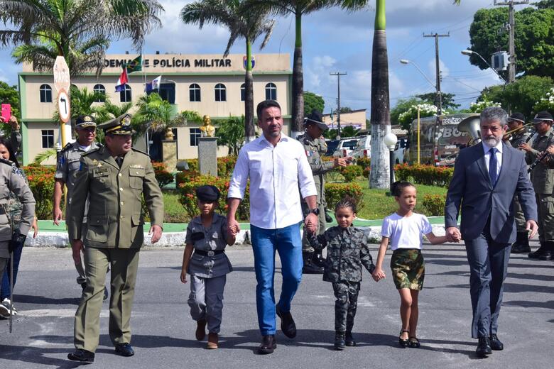 Vanessa Fernandes da Silva tem o pai que é sargento já há mais de 20 anos na PM. No dia do aniversário da PM, ele estava em serviço, mas Vanessa teve motivos de sobra para compensar a ausência paterna na celebração dos 191 anos da Corporação. A filha Radássia Vitória, de apenas 5 anos, desfilou à caráter. Ela foi a sensação com mais duas amiguinhas da mesma idade ao desfilar com o governador Paulo Dantas.