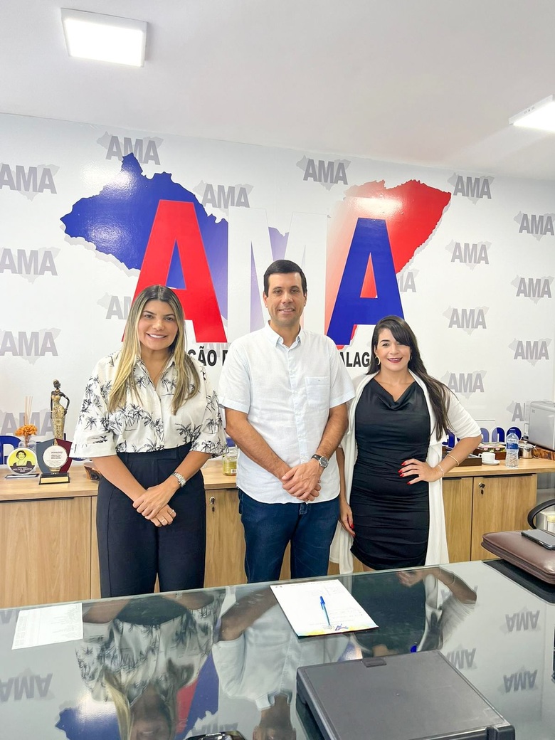Hugo Wanderley, presidente da Associação dos Municípios Alagoanos (AMA), e a vice-presidente da AMA, Jeane Moura, receberam nesta terça-feira, 14, a Comissão da Mulher Segura, da Secretaria de Estado da Segurança Pública de Alagoas (SSP/AL). O encontro teve como objetivo discutir ações para combater a violência contra a mulher nos municípios de Alagoas.