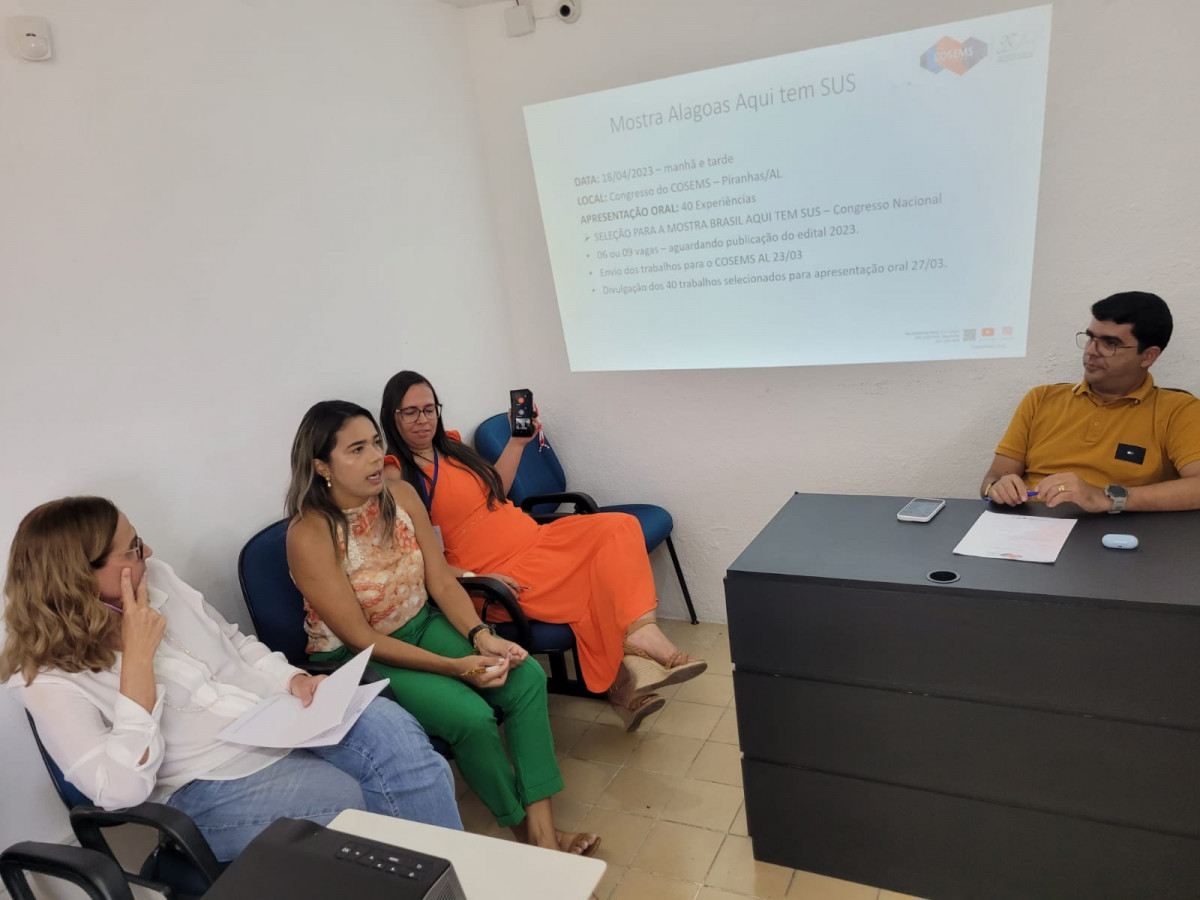 A secretária executiva do Cosems-AL Kátia Betina e a apoiadora regional Mirna Vaz detalharam o edital da Mostra Alagoas Aqui Tem SUS. Segundo elas o documento deverá ser publicado nos próximos dias.