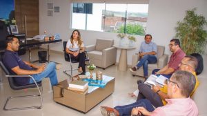 Prefeita Ângela e o secretário Neno da Laje se reuniram com o padre para definir apoio ao evento
