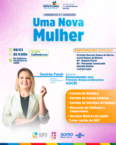 Além da participação especial da prefeita Marcela Gomes, o evento contará com uma importante palestra com a analista comportamental e coach Desirée Farah, enfocando o tema “Entendendo seu Primeiro Empreendimento: Você”. O worksho terá também sorteio de brindes, de cestas básicas e serviços de beleza, marcação de citologia e colposcopia; além de serviços básicos de saúde. É importante levar o cartão do SUS.