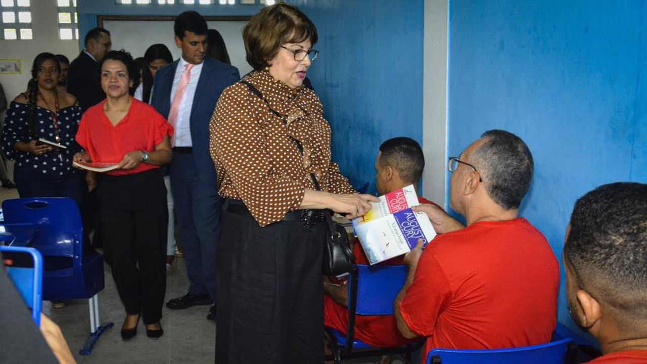 Durante a ação também foram entregues 400 novos livros para os participantes do projeto no presídio masculino Baldomero Cavalcanti. No total, mais de mil reeducandos estão inscritos e a meta é beneficiar mais de 3 mil custodiados até o final deste ano.