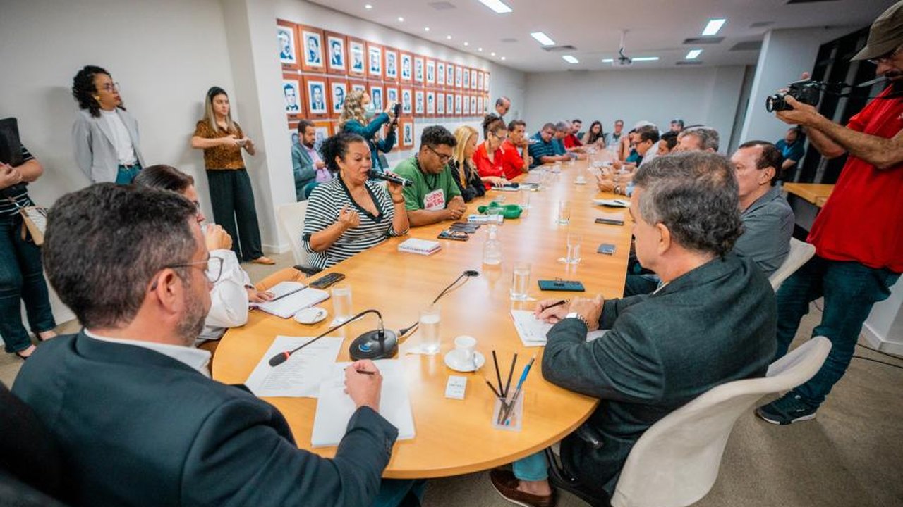 Participaram da reunião dezenas de lideranças sindicais, o deputado Ronaldo Medeiros e a secretária Roseane Vasconcelos (Gabinete Civil).