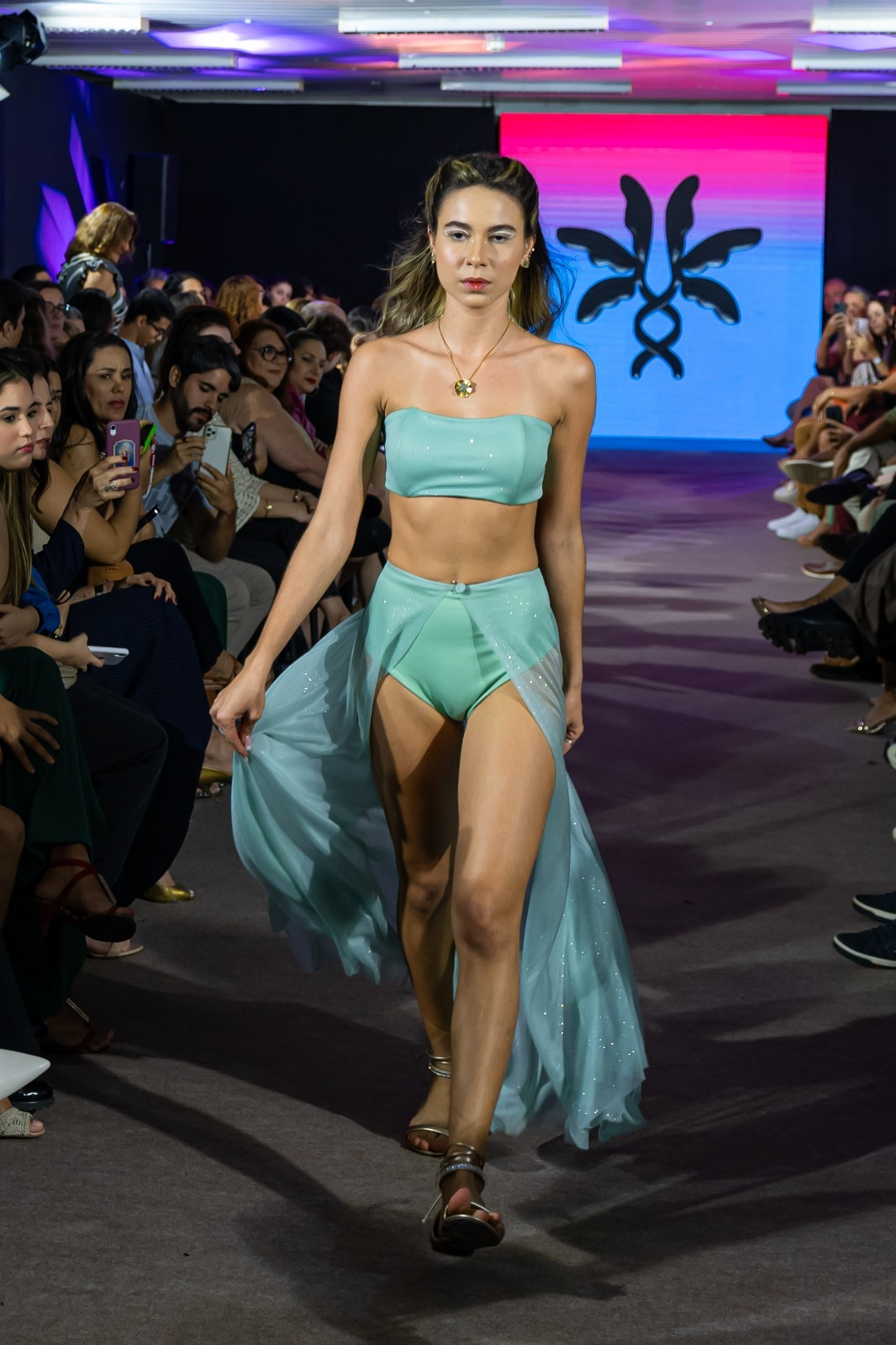 Trazendo um novo olhar para a moda e a criatividade do estado, o Projeto DNA 82 tem a missão de popularizar e desmistificar a moda alagoana. O desfile foi plural em formas e discursos, trazendo o bordado de filé, as texturas e histórias de Alagoas.