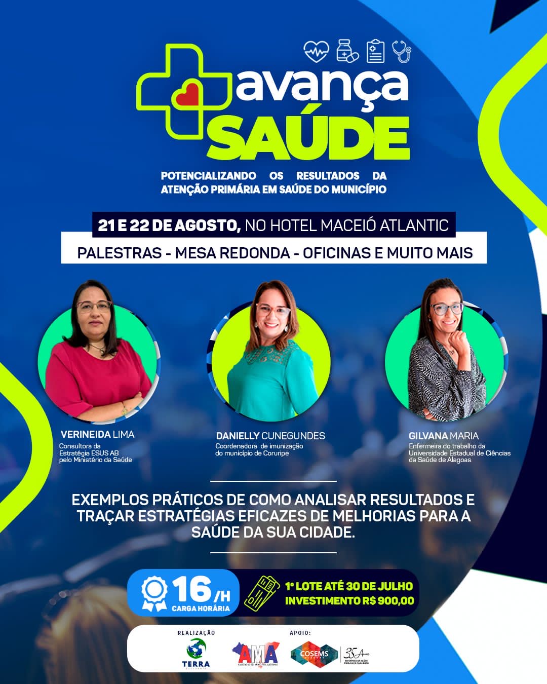 Avança + Saúde: grande evento reunirá profissionais da área dias 21 e 22 de agosto em Maceió