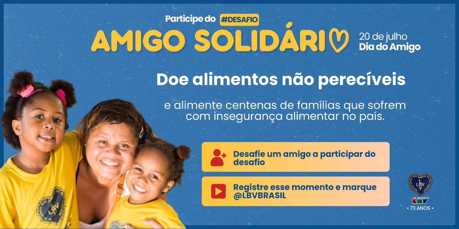 — Mobilize seus amigos para participar do desafio solidário, registrando esse momento especial com seu amigo e marcando o perfil @LBVBrasil no Instagram e no Facebook.