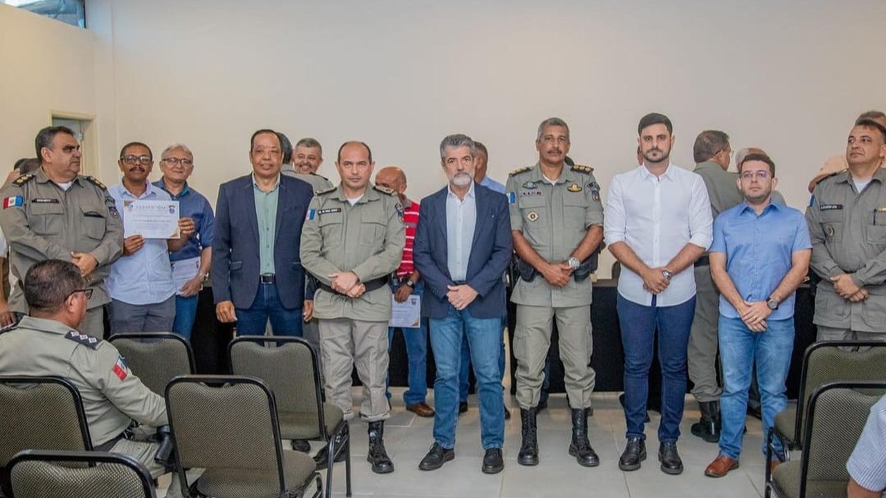 Prefeito e vice de Belo Monte recebem homenagem do 7º Batalhão da PM em Santana do Ipanema