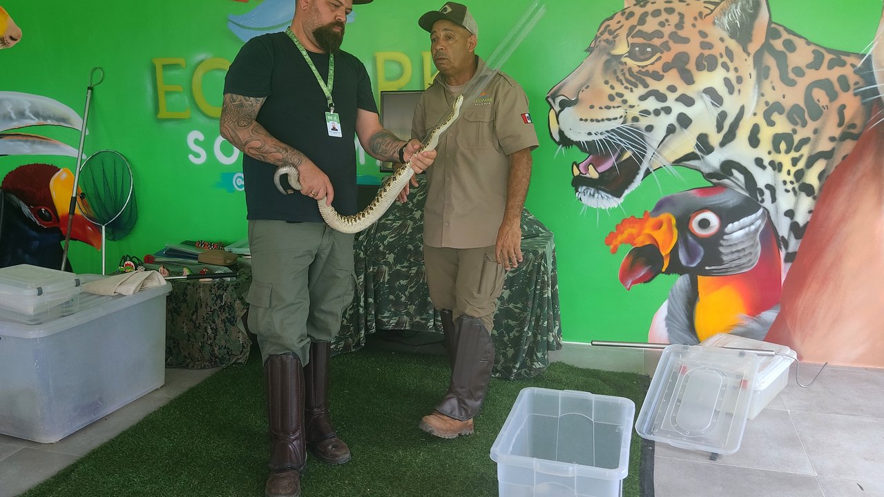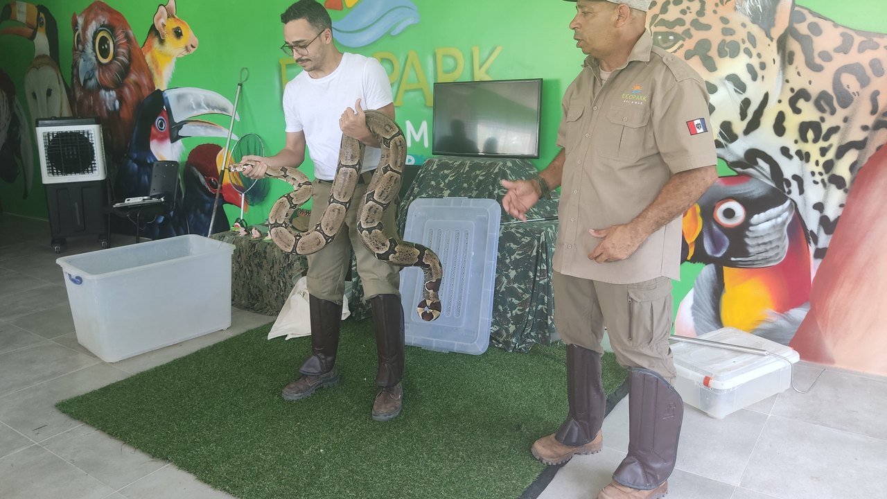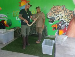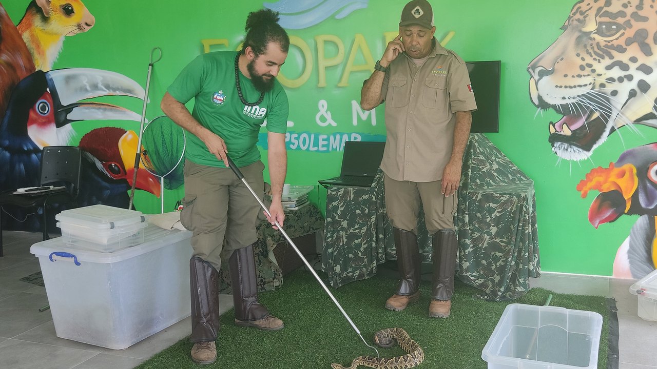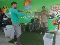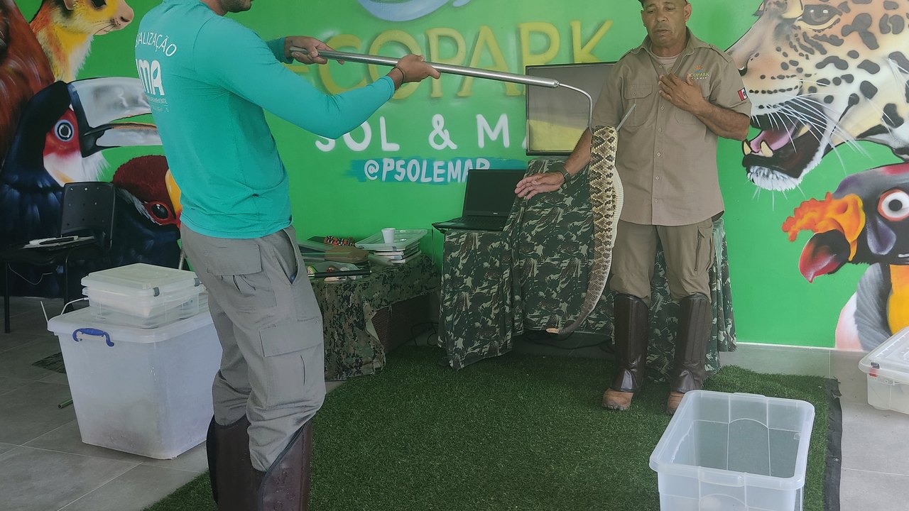 Já na sexta-feira (01), o responsável pelo serpentário do Zoológico Ecopark Sol e Mar realizou um treinamento para contenção e manejo de serpentes e outros répteis. As equipes do Instituto foram instruídas acerca desses animais e na parte prática, realizaram o manuseio de algumas espécies como: jibóia, jacaré, jararacuçu, falsa-coral e cascavel.