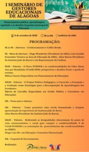 O I Seminário de Gestores Educacionais de Alagoas – Edição Maceió, portanto, é uma oportunidade única para gestores, educadores e demais profissionais da área discutirem estratégias para enfrentar os desafios da educação no estado e promover avanços significativos na qualidade da educação municipal.