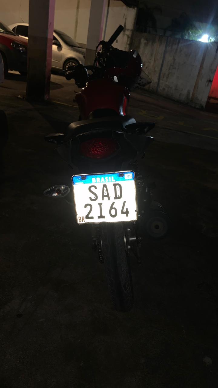 Com ele foi apreendido uma pistola 9mm, um carregador, 18 munições de calibre 9mm, cinco aparelhos celulares, dois controles de vídeo game e uma motocicleta, Honda/CG, vermelha, placa SAD 2I64, com restrição de roubo.