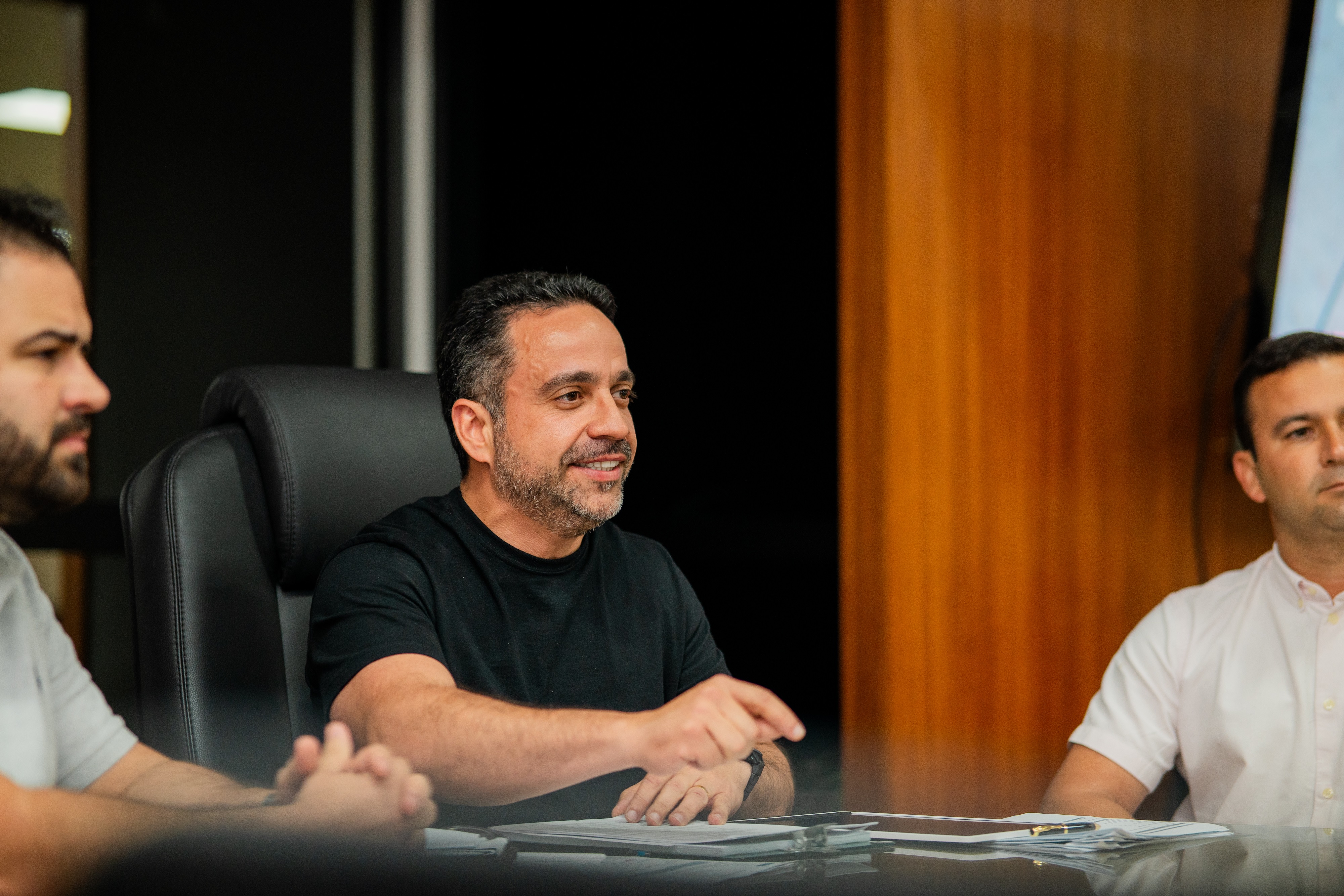 Acompanhado dos diretores Gustavo Lopes