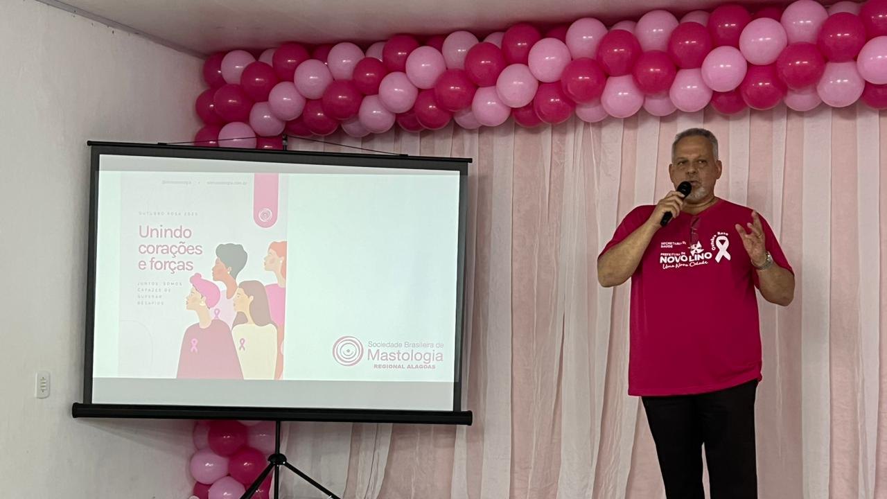 Dentro da programação da campanha Outubro Rosa, a prefeitura de Novo Lino promoveu nesta quarta-feira, 25, uma palestra com o mastologista Alexandre Calado, representante regional da Sociedade Brasileira de Mastologia, em Alagoas. A palestra contou com a presença da prefeita Marcela Gomes, do secretário municipal de Saúde, médico Oswaldo Gomes, além da participação ativa das mulheres linenses.