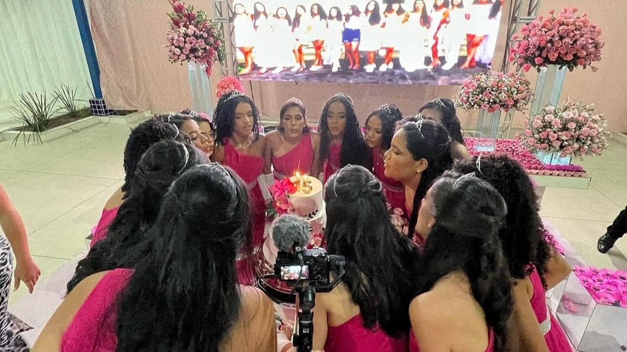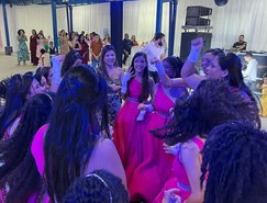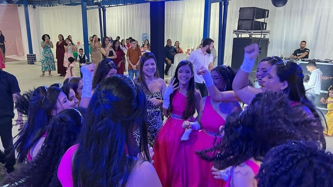 O momento dos parabéns foi celebrado ao redor de um lindo bolo, com a prefeita, autoridades locais e familiares compartilhando a alegria desse momento único. Após toda a programação formal, as debutantes aproveitaram a pista de dança ao som de música eletrônica, encerrando a noite com muita animação.