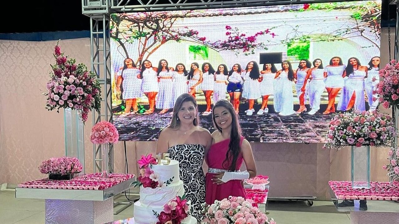 “Agradeço a @secretariadeculturaeeventosnl por toda ornamentação e organização do evento; a Secretaria @carolgomesdebarros pelo empenho de sempre. Agradecer também a @rozianecorreia_ pela organização na festa; @jumariamelo04 pelos convites e as caixinhas de lembrança; a @andriezia_bolos_decorados pelos bolos das debutante; ao @msdocesepersonalizados pelo bolo da festa; a @quiteria7271, @josinamariada_s e @cleide_ferreiira79 pelas deliciosas comidas; a @edvania1silva e @gefilalaismakeup pelos cabelos e maquiagem; @camilaarthur765 pelo spa; e a toda equipe do marketing nas pessoas do @gutofilmes, @michael_monteiro1, @ru1batista e @jgnoticiasoficial. Meu muito obrigada a todos vocês, e foi uma linda festa dessas 15 princesas!