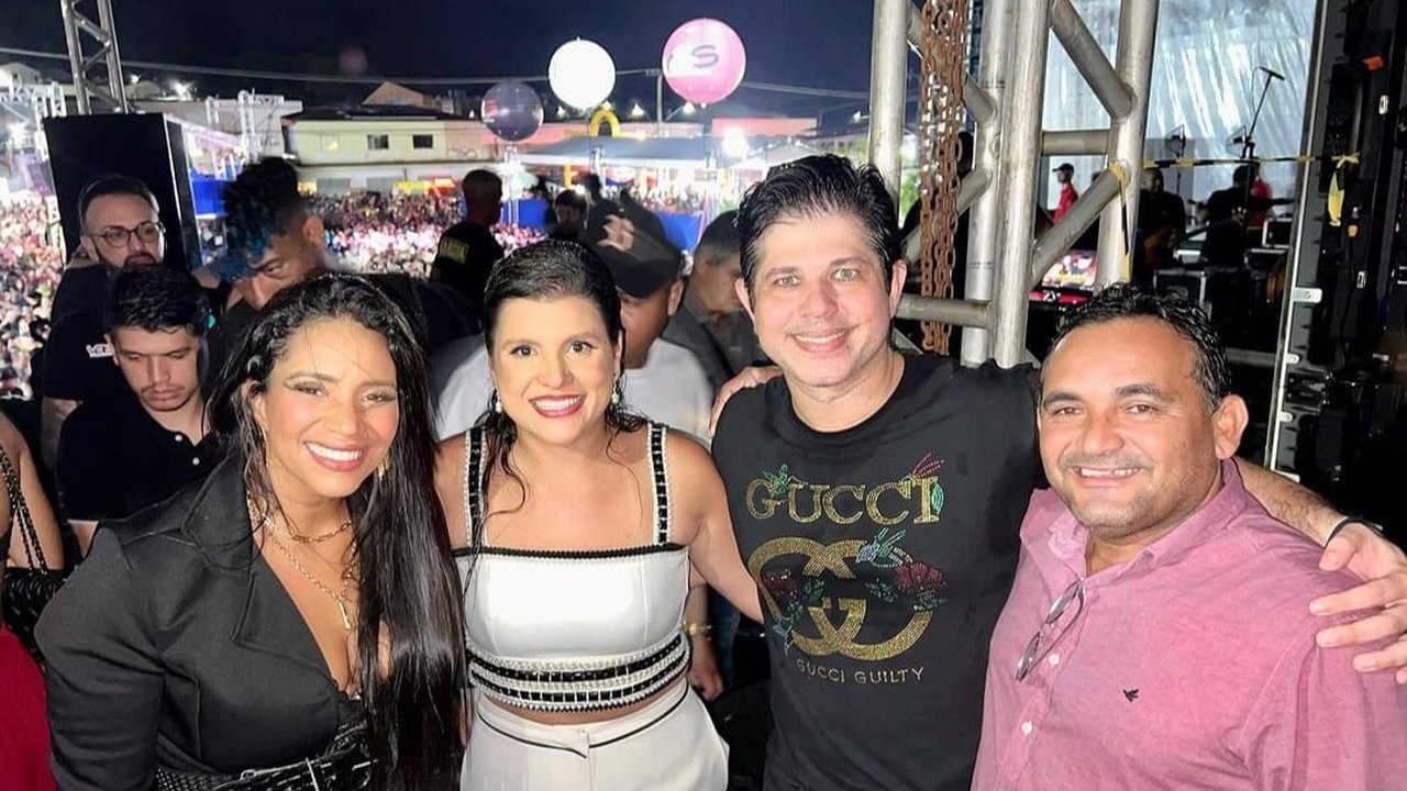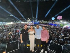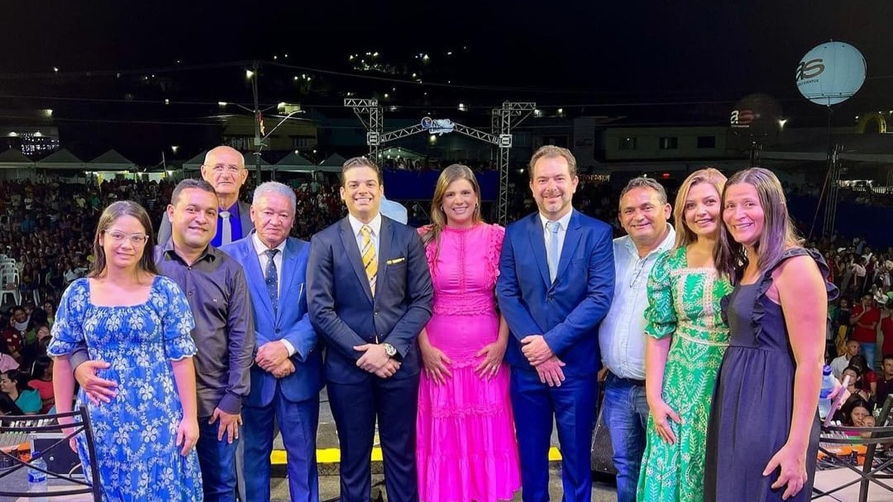 “O maior Novo Lino Fest dos últimos tempos aconteceu! Abrilhantando a última noite das festividades de 61 anos de emancipação política, tivemos como atrações @antoniooclone, @bandakarisma e fechando com chave de ouro @nadsonferinhaof, levantando o astral da multidão presente. Ao lado de meu esposo @henriquejavel, e do vice-prefeito @val.santos.351, agradeço a presença de todos e enalteço cada linense, sem esquecer dos visitantes. Também esteve presente os amigos @prefeitopino e @netodepino em nossa festa”.