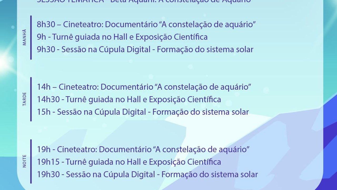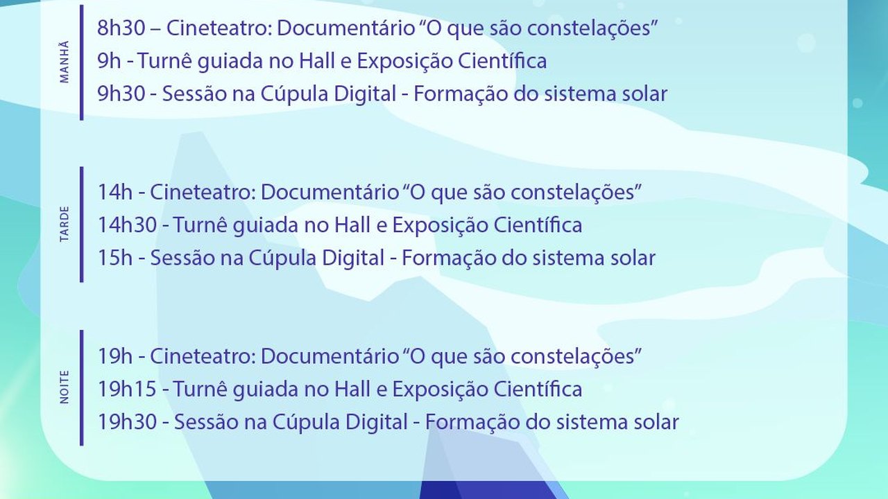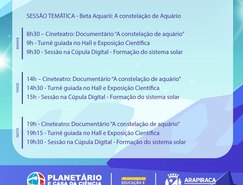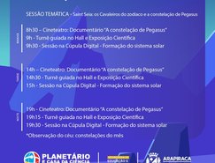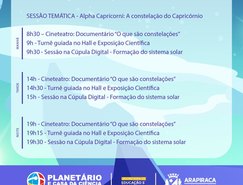 A programação deste ano envolverá a temática do zodíaco, englobando as constelações de Capricórnio; Aquário; as Três Marias e Orion; Andrômeda; e Pégasus.