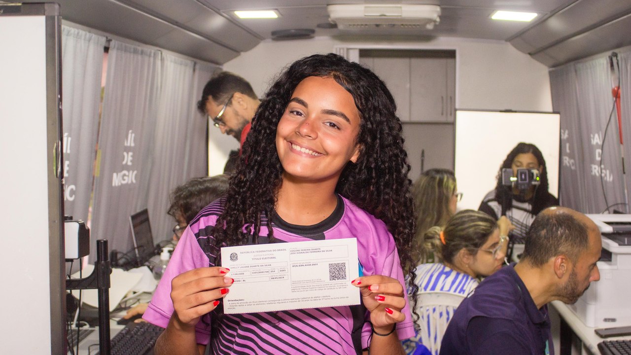 “Como uma forma de estimular esses jovens que têm entre 16 e 18 anos e ainda não eram eleitores, o TRE de Alagoas trouxe o ônibus para um dos maiores complexos educacionais da América Latina. No último dia que é possível fazer o alistamento e