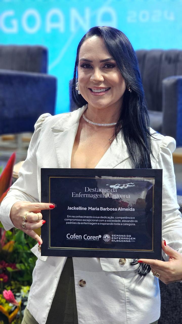 Em uma cerimônia realizada na noite desta quarta-feira (22), no Centro de Convenções de Maceió, a enfermeira Jackelline Barbosa foi reconhecida como destaque alagoano na área pelo trabalho realizado ao longo de 13 anos de carreira como enfermeira assistencialista, especialista em neonatologia e pediatria e urgência e emergência.