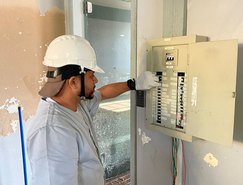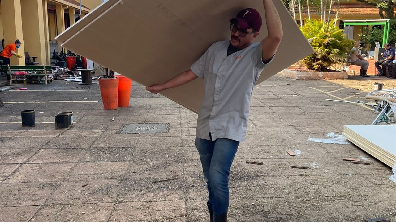 Pelo Senai Poço, os especialistas Claudenor Arcanjo dos Santos Netto e Alessandro Francisco da Cruz Júnior chegaram ao Rio Grande do Sul no último dia 29. Instrutor da área de Eletricidade, Claudenor apoia as frentes que envolvam competências relacionadas à segurança de sistemas elétricos de potência, limpeza e organização. Alessandro é instrutor da área de Construção Civil, e possui as competências de gesseiro, pintor, hidráulica predial, limpeza e organização.