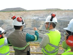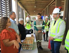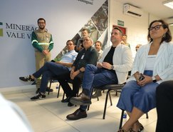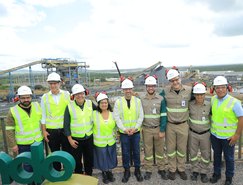 Ele passou pelo mirante da mina, conhecendo os processos de extração feitos na cava a céu aberto, e seguiu para o platô da Britagem, onde observou o passo a passo das atividades da via seca, com vista panorâmica do site. Por fim, todos da comitiva se dirigiram para o galpão de concentrado de cobre, para conferir o produto final da MVV.