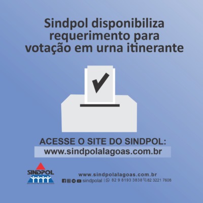 Os policiais civis sindicalizados, que não poderão se deslocar até a sede do Sindpol para as eleições, por estarem enfermos, presos ou com dificuldade de locomoção, devem requerer a votação na itinerante até o dia 22 de julho. No requerimento padrão (https://sindpolalagoas.com.br/wp-content/uploads/2024/07/REQUERIMENTOurnaitinerante.docx), deve-se anexar cópia da identidade funcional ou equivalente e enviar para o e-mail do Sindpol: [email protected] até o dia 22 de julho.
