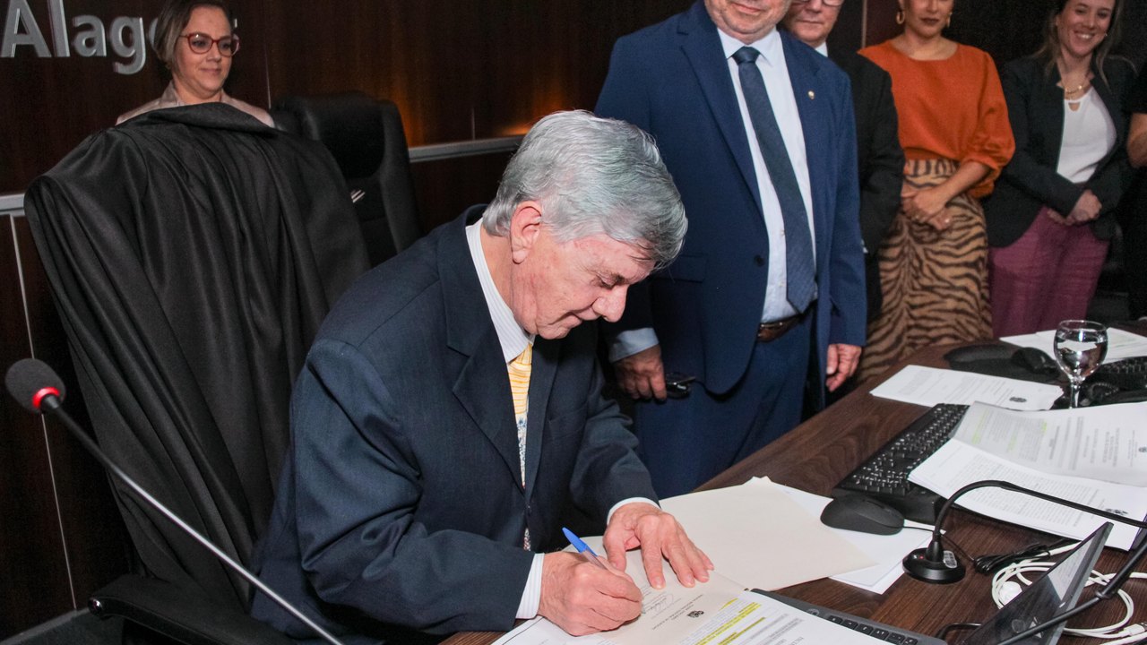 O Tribunal Regional Eleitoral de Alagoas (TRE/AL), o Tribunal Regional do Trabalho de Alagoas (TRT-AL) o Ministério Público do Trabalho em Alagoas (MPT/AL), a Procuradoria Regional Eleitoral de Alagoas (PRE/AL) e o Ministério Público Estadual (MPE) assinaram, na tarde desta segunda-feira (02), um Acordo de Cooperação Técnica visando prevenir e reprimir o assédio eleitoral no ambiente de trabalho. A assinatura aconteceu no auditório do TRE e reuniu representantes das instituições e da Justiça Eleitoral.