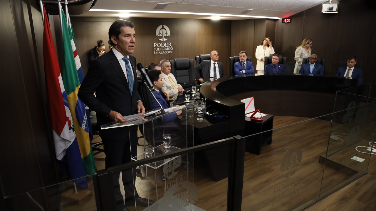 Durante a solenidade, que ocorreu na sede do TJAL, Lean Araújo, que se tornou procurador-geral agora em 2024, após o término do mandato de Márcio Roberto Tenório de Albuquerque à frente do MPAL, lembrou que participou da gestão no cargo de subprocurador-geral Administrativo Institucional: “O desembargador Márcio é um agente público que agrega e promove o diálogo. Foi graças a esse seu olhar coletivo, quando ele estava como PGJ, que pude voltar à administração superior. E eu agradeço por aquela oportunidade que a mim foi dada. Quero também dizer da minha admiração e respeito pelo Márcio, que é uma inspiração por ser um homem democrata e que permite brilhar todos aqueles que estão à sua volta. Por fim, reforço que foi ele quem iniciou o processo de ampliação no número de analistas do nosso Ministério Público, permitindo que as promotorias e procuradorias pudessem desenvolver um trabalho ainda melhor em benefício da sociedade”, afirmou.