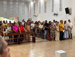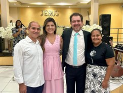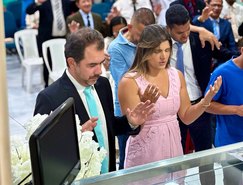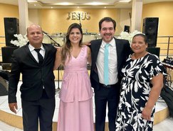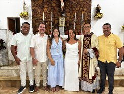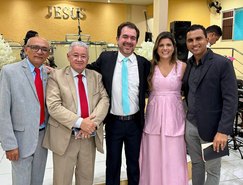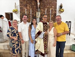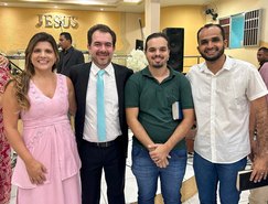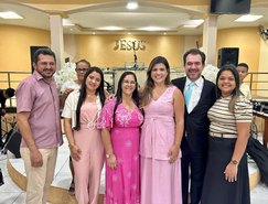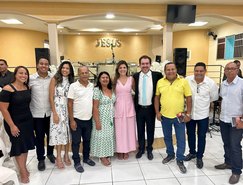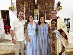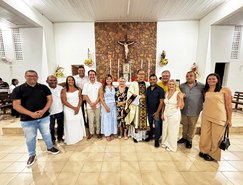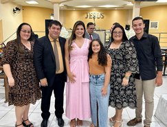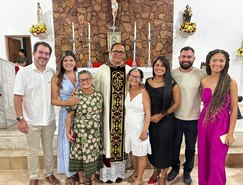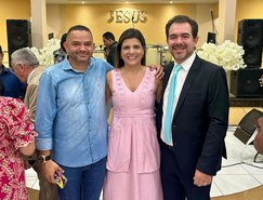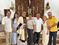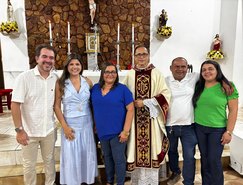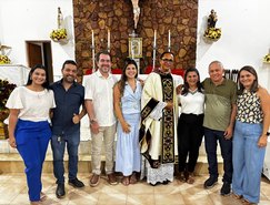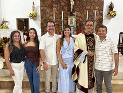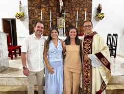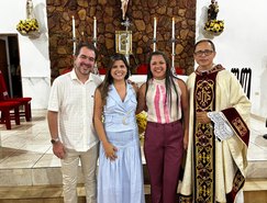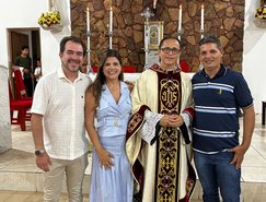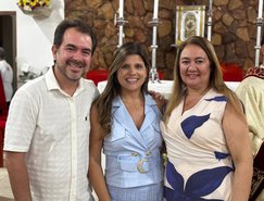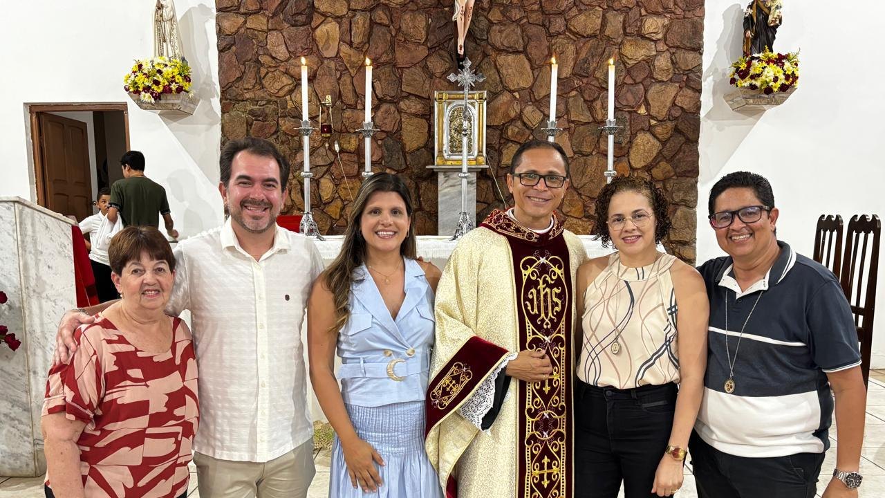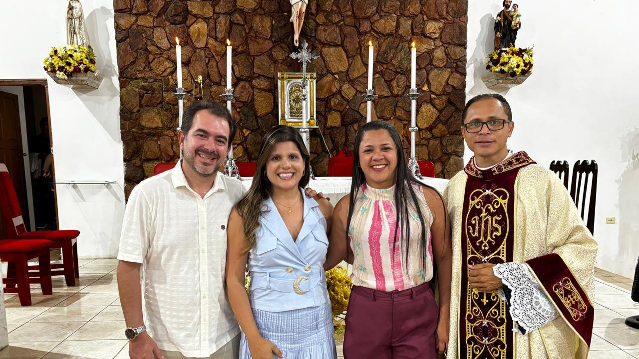 “Registros da Missa em Ação de Graças, que aconteceu no final da tarde de ontem na @paroquiasjnl!. Agradeço ao Pe. @ronaldosantos1903 pela linda celebração e a todos que foram para este momento de alegria e gratidão a Deus e a Nossa Senhora por essa vitória”, publicou. Além da prefeita, que estava acompanhada por seu esposo, Henrique Almeida, os atos religiosos foram acompanhados por familiares e secretários municipais.