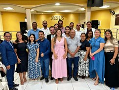 A prefeita Marcela Gomes participou de duas celebrações religiosas para agradecer por sua reeleição em Novo Lino, no último dia 6 de outubro. Marcela foi reeleita com a maior votação já recebida por um candidato a prefeito na história política do município. Na sexta, dia 18, a prefeita ao lado de familiares e do vice-prefeito Val Santos, esteve presente no culto em Ação de Graças, celebrado na Igreja Assembleia de Deus.