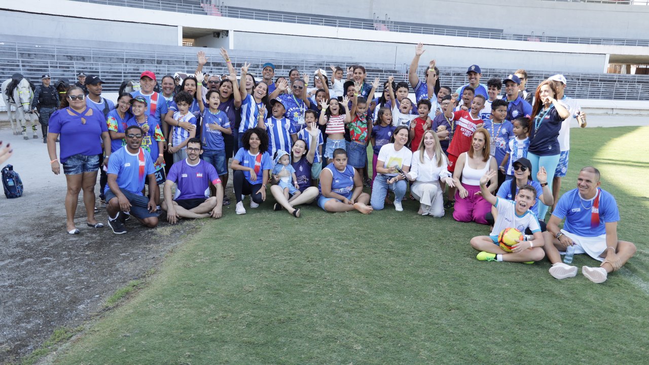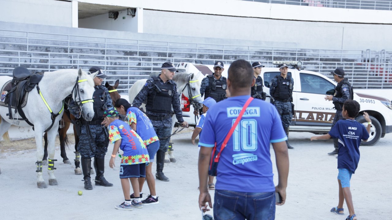 “O dia de hoje foi muito legal. A rivalidade tem que existir só dentro de campo. Aqui fora, o que importa é a amizade”. Foi nesse clima de diversão e empatia que o pequeno Guilherme Cayk Ferreira, de 9 anos, aproveitou a ação do projeto Jogando pela Paz, uma iniciativa do Ministério Público do Estado de Alagas (MPAL), que aconteceu neste domingo (20), no Estádio Rei Pelé. Assim como ele, dezenas de crianças filhas de torcedores dos times CSA e CRB também estiveram na maior arena de Maceió ainda em celebração ao Dia das Crianças. A iniciativa, que contou com vários parceiros, teve o objetivo de formar futuros torcedores que tenham respeito entre si.